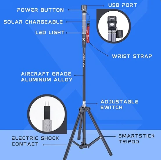 แท่งเดินป่าทางยุทธวิธีสามารถเพิ่มพลังให้กับสมาร์ทโฟนหรืออุปกรณ์ USB อื่น ๆ ของคุณโดยใช้พอร์ต USB ที่สะดวก ไม่ต้องกังวลเกี่ยวกับการพกพาธนาคารไฟฟ้าเมื่อคุณมีแท่งเดินป่าเพื่อความอยู่รอด