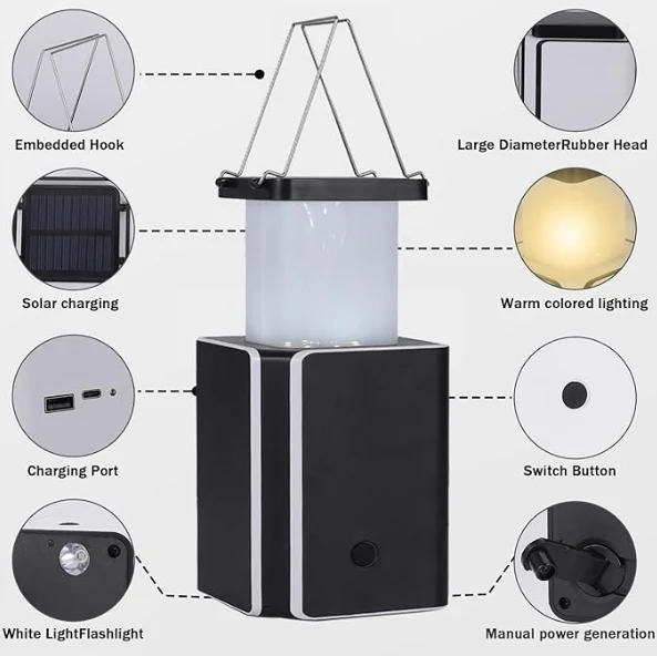 ไฟตั้งแคมป์แสงอาทิตย์ LED, ไฟตั้งแคมป์ฉุกเฉินไฟโคมไฟด้วยมือของมืออาชีพหากคุณไม่มีเครื่องชาร์จรอบ ๆ และไม่มีแสงแดดเครื่องกำเนิดไฟฟ้าที่ทำด้วยมือนี้เหมาะสำหรับการชาร์จไฟ