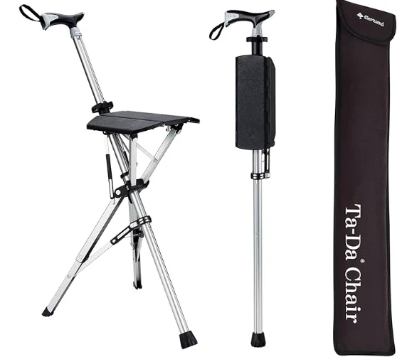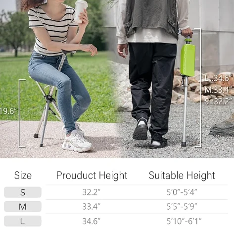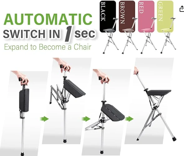 Old Men Alpenstock Trekking อ้อยพักผ่อนและเดินป่าเพื่อรับการสนับสนุน การออกแบบนี้ซึ่งแปลงแท่งเดินป่าเป็นเก้าอี้ด้วยสแน็ปให้การพักผ่อนสำหรับขาและหัวเข่าที่เหนื่อยล้าในเวลาไม่นาน