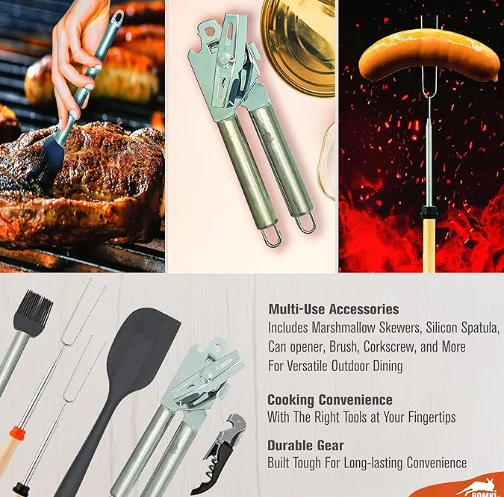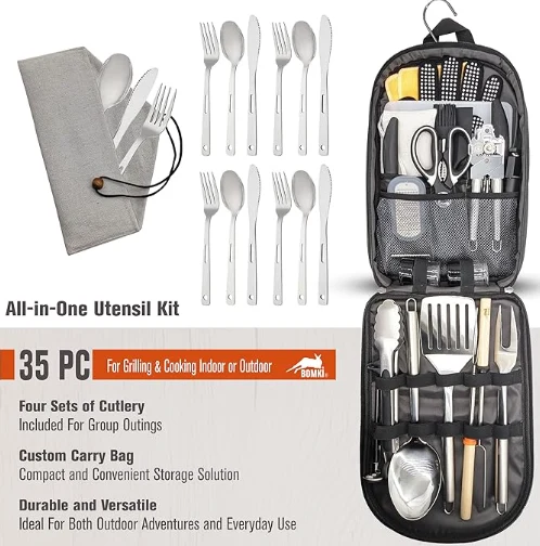ชุดจัดเก็บเครื่องครัวตั้งแคมป์กลางแจ้งชุดอุปกรณ์ทำอาหาร 35 พีซีนี้เป็นโซลูชั่นที่สมบูรณ์แบบสำหรับความต้องการในการทำอาหารกลางแจ้งของคุณ มันมีชุดห้องครัวตั้งแคมป์และชุดปรุงอาหารค่ายค่ายทั้งหมดบรรจุอย่างประณีตในกระเป๋าที่กำหนดเองพร้อมช่องพิเศษและกระเป๋าหลังสองช่อง ชุดถูกออกแบบมาเพื่อรองรับสิ่งจำเป็นในการทำอาหารค่ายพักแรมของคุณ