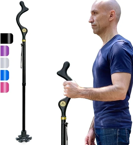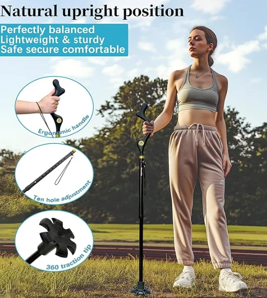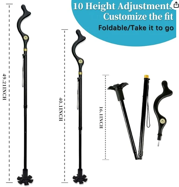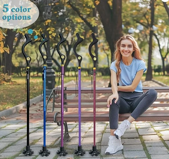 อุปกรณ์ปีนเขากลางแจ้งเสาเดินป่า, อ้อยเดินได้สำหรับชายและหญิงผู้อาวุโสเพื่อความสมดุล, อ้อยพับตัวเอง, ปรับความสูงต่อต้านลื่นได้