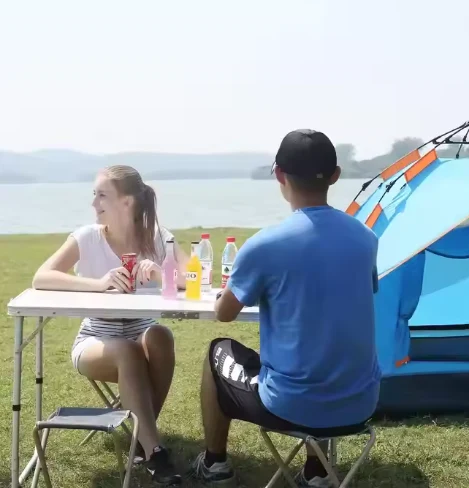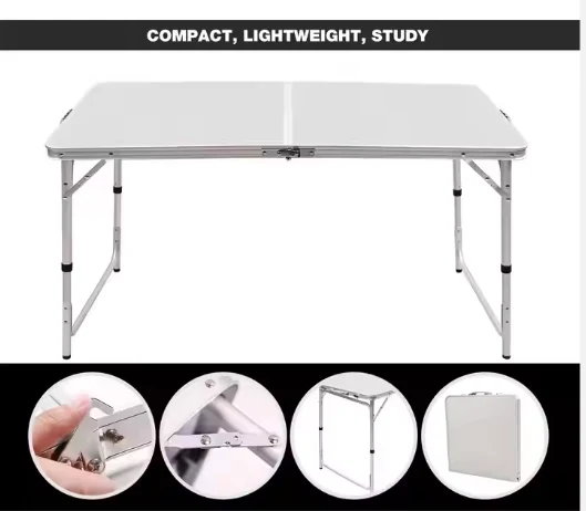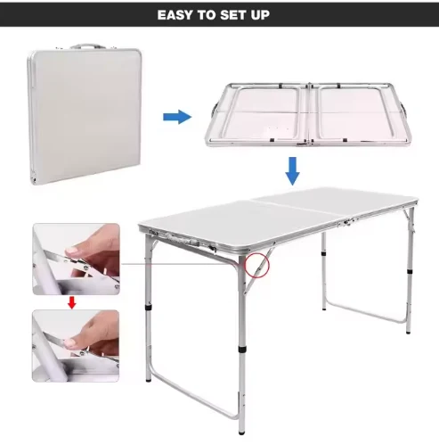 โต๊ะอลูมิเนียมพับแบบพกพามีการใช้งานแบบอเนกประสงค์ทั้งในร่มและกลางแจ้งรวมถึงโต๊ะปิกนิกโต๊ะชายหาดและโต๊ะในครัวตั้งแคมป์ซึ่งใช้สำหรับการตั้งแคมป์ชายหาดการท่องเที่ยวการแข่งขันกีฬา RV ด้านนอกและตกปลา