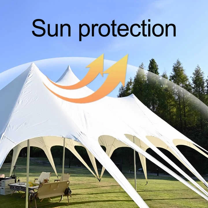 กันฝนกันฝนเต็นท์กลางแจ้งขนาดใหญ่เหมาะสำหรับการใช้เวลากลางแจ้งในสายฝนอย่างสะดวกสบายและทนทานเป็นเวลานานในการใช้งานง่ายกว่าการดูแลมากกว่าเต็นท์ผ้าใบ