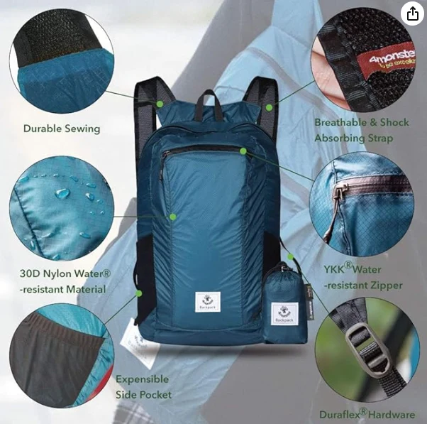 เป้ปีนเขาน้ำหนักเบาที่กันน้ำกันน้ำ Daypack ปีนเขาน้ำหนักเบานี้ทำจากวัสดุและซิปที่กันน้ำ ป้องกันไม่ให้น้ำฝนเปียกโทรศัพท์หรือเงินสดและรายการอื่น ๆ ในกระเป๋าเป้สะพายหลัง